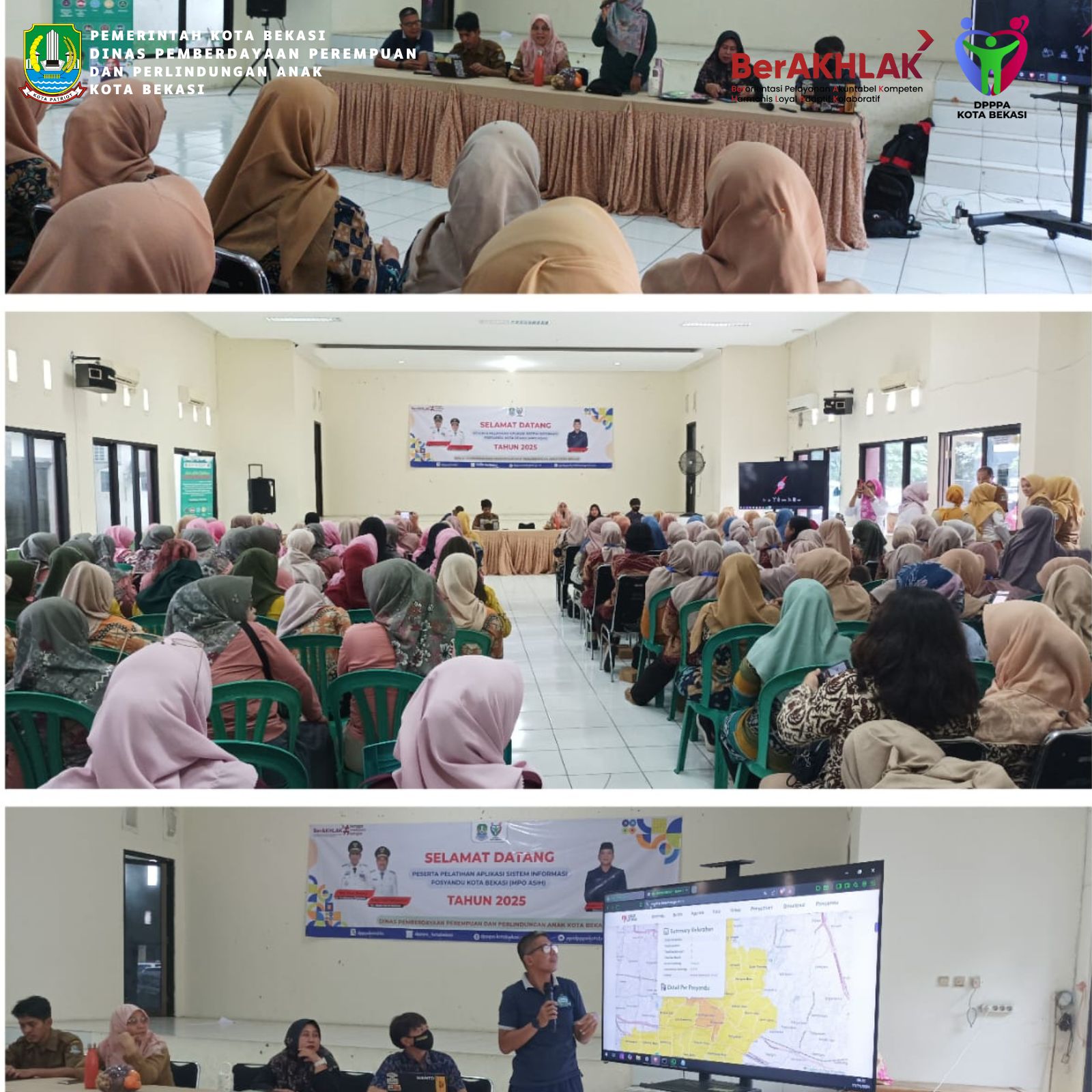 Kepala Bidang PUGPPKK Bersama Jg Analis Ahli Kebijakan Dan Penata Layanan Operasional Membuka Kegiatan Sosialisasi Aplikasi Mpok Asih Bagi Kader Posyandu Di 3 Kecamatan, Di Aula Kec. Bekasi Barat Hari Selasa 11/11/2025